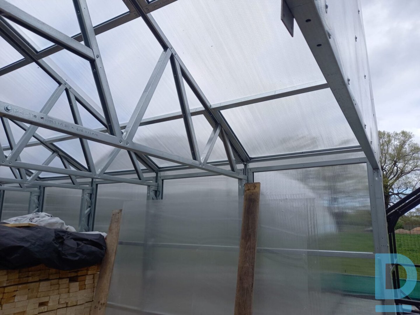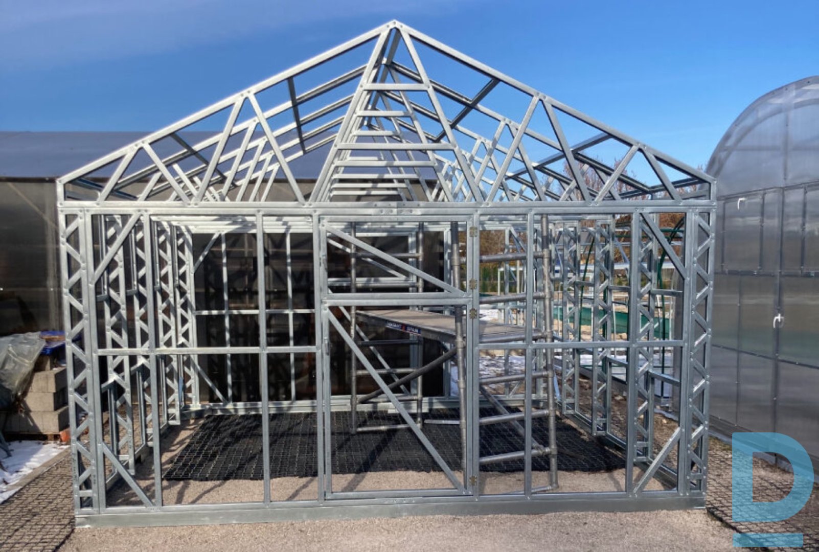 Siltumnīca MT PRO 4x4 STRONG IZMĒRI: Platums 4000mm Garums 4000mm Augstums kore 2600mm Augstums sānu sienas 1800mm Profils profilēts cinkots tērauds 40x40mm Stipras izturības siltumnīca. Abos galos durvis ar vēdlogiem. Karkass ir izjaucams. Viegla transportēšana. Polikarbonāts 4 mm. (Pamati komplektā NAV IEKĻAUTI) Siltumnīcu iespējams aprīkot ar papildaprīkojumu: Pagarinājums +1.98m 337 EUR Pamati 4X4m 121 EUR Pamatu pagarinājums 2m 45 EUR Cinkota dobju apmale 0.62X3.94m 68 EUR Cinkota dobju apmale 0.62X3m 58 EUR Cinkota dobju apmale 1X3m 65EUR Cinkota dobju apmale 1X3.94m 75 EUR Papildus sānu vēdlogs 58 EUR Papildus jumta vēdlogs VELUX 72 EUR Automātiskā vēdināšanas sistēma Ventilējošā lenta polikarbonātam universālā 24 EUR Polikarbonāts 6mm 180 EUR Siltumnīcu var izmantot kā garāžu nomainot durvis uz vārtiem - pēc pieprasījuma! |